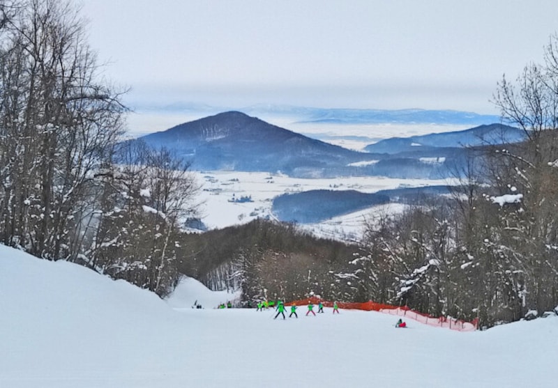 ぴっぷスキー場。リフト3本のコンパクトなスキー場ですが、山頂から2200メートルのロングクルーズを楽しめる初級
