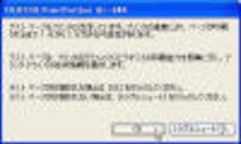 ・注意が表示されるので「次へ」ボタンを押す。前の画面で自動検出をOFFにしておけばこの注意は表示されませんが、この画面が表示されても特に問題はありません。