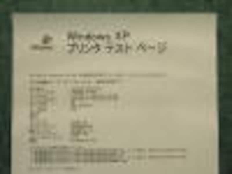 ・「完了」ボタンを押す。これで、テスト印刷が実行されます。右の写真は実際に筆者が印刷した用紙です。