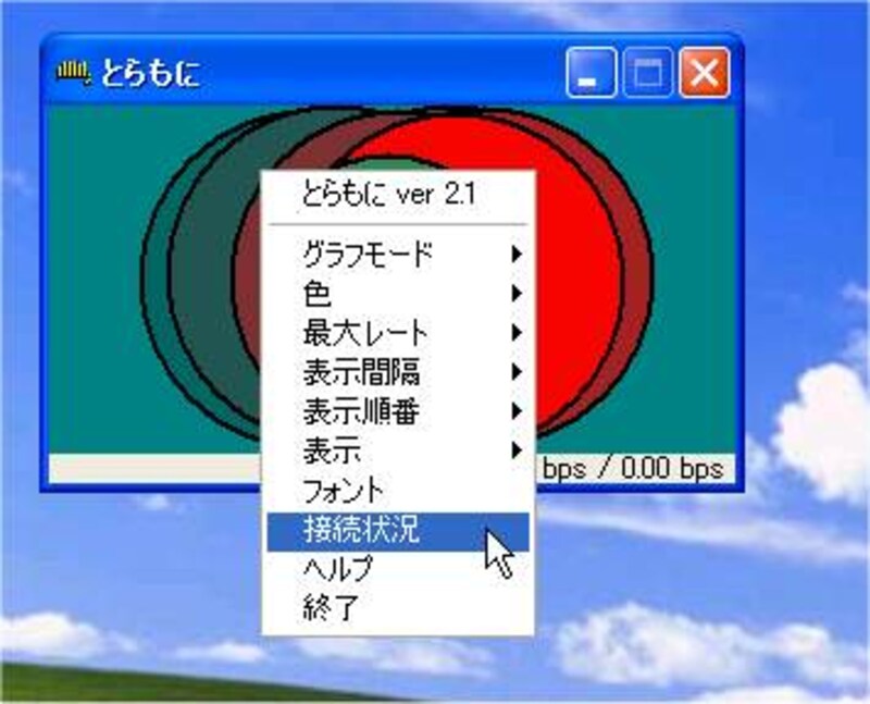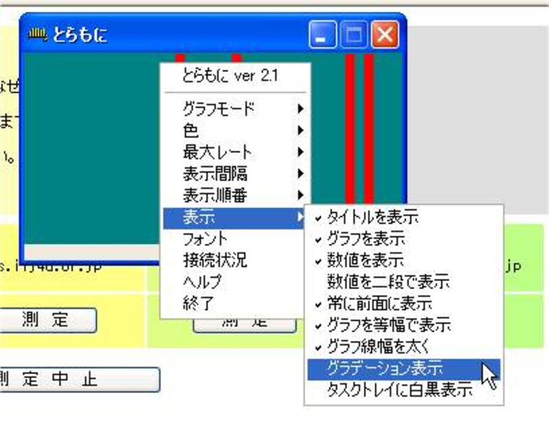 コンテキストメニューの「表示順番」というメニューは、グラフの右下に表示される送信/受信の数値の位置を入れ替えるメニューです。