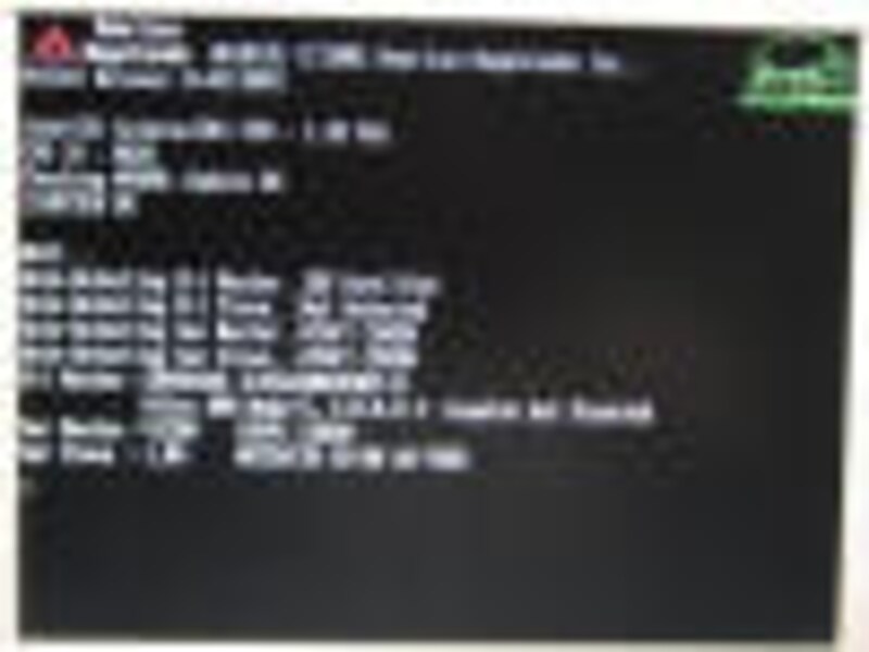マザーボードの品番やBIOSのリビジョンの表示があるので、どのマザーかという情報は写真をご覧になれば分かりますよ。まず考えたのは、ビデオカードとの相性です。そこで、別のビデオカードに変えて同じように起動してみました。結果は同じです。つぎに、マザーボードのBIOSのアップデート を考えました。メーカーのサイトに行ってリビジョン番号を見ると、現在のマザーに入っているBIOSが最新であることが判明!。そこで、PCIスロットの差込状況など何度も確認しましたが、一向に好転しません。同じPCIスロットに手持ちの100BASE-TのNICをセットすれば、全然問題なしで 作動します。BIOSの設定を確認してみたり、C-MOSのクリアまでしてみましたが、状況は全く同じです。これは、どうみてもマザーと1000BASE-Tのカードの相性としか考えられません。