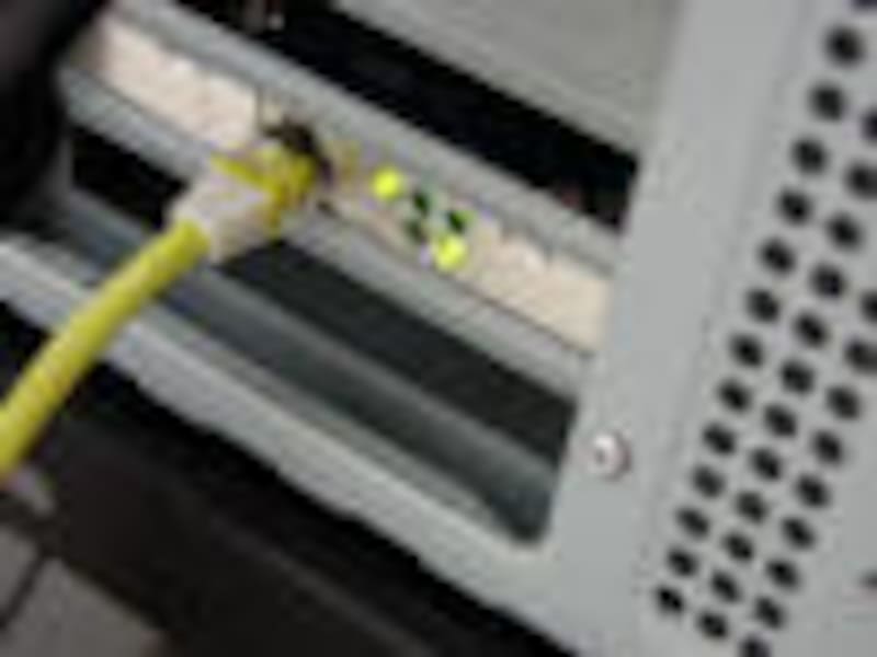 下の写真をご覧ください。1000BASE-TのNICにカテゴリー5Eのケーブルを接続しています。LEDのランプは、写真ではちょっと見にくいのですが1000BASEでコネクトしていることを示しています。