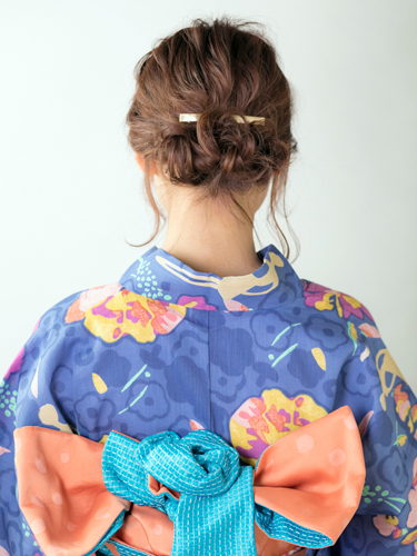 動きのあるアレンジを活かし、ヘアアクセはシンプルに。ゴールドの輝きが上品な細身のバレッタは、オフィスでも活躍する万能デザイン。浴衣にあえて普段使いのヘアアクセを合わせることで、こなれた雰囲気に仕上げます。