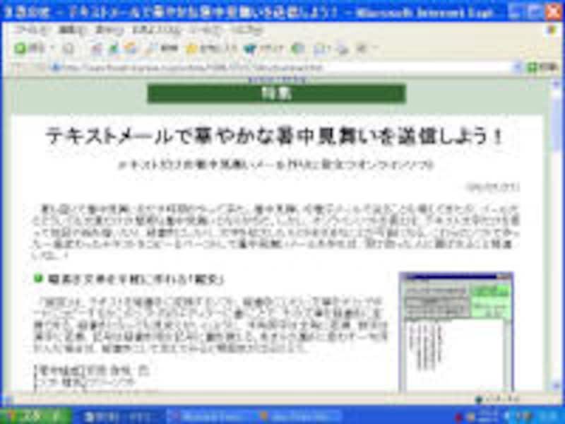 現在は、 暑中見舞いにはちょっと早いという時期に使えるカードが掲載されています。その時期ごとに、適切なカードが掲載されるでしょう。また、左のメニューから「季節~夏~」というリンクを選択すると夏のカードが表示されます。
