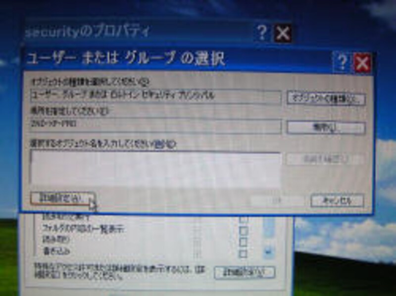 指定したユーザにアクセス制限するフォルダが表示されるようにしたら、今度はセキュリティを設定します。