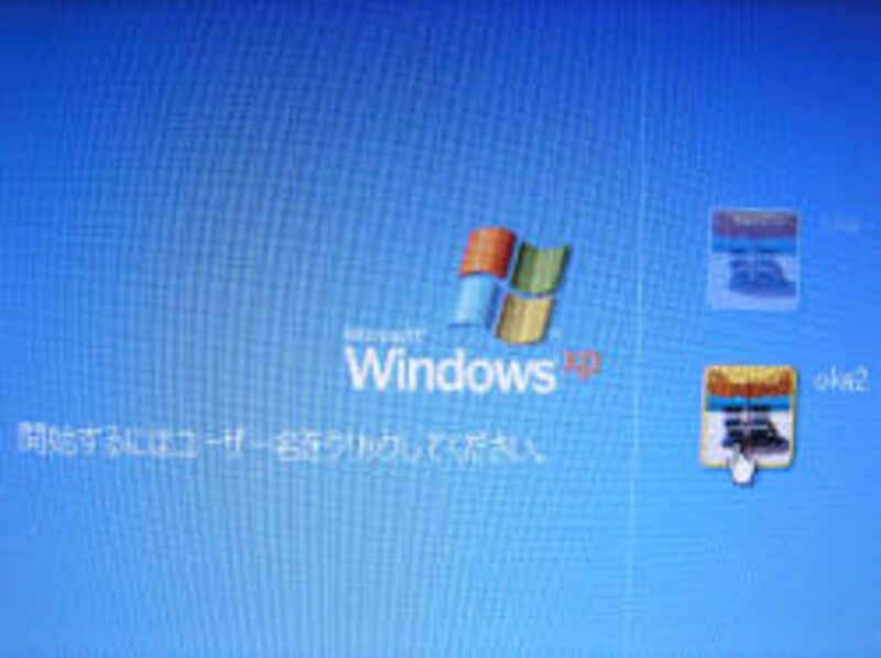 このあと、サーバ側とクライアント側のコンピュータを再起動します。再起動しないと、設定が有効になりませんから、こちらも忘れずに実行してください。サーバ側は、起動時にログインユーザを聞いてくるようになりますので、ここでは管理者の[oka2]を選択するようにしてください。[oka]を選択すると、セキュリティを設定したフォルダが表示されません。
