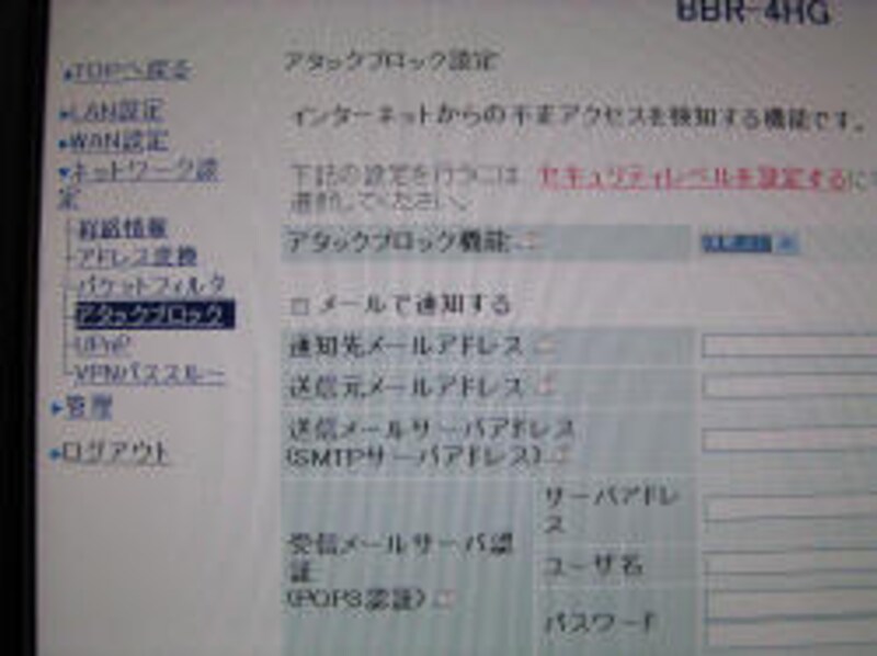 アタックブロックとは、コンピュータをダウンさせるDoS攻撃や侵入可能なポートを調査するPortScanなどをガードする機能です。このほかに、TCPステルスFINスキャン、TCPステルスXmastreeスキャン、TCP ACKスキャン、TCP FIN/synスキャン、syn flood、land、UDP port loopback、IP spoofingなどをブロックします。反面、困ったことに、この調査で利用したFTP転送も、不正なアタックとして検出されてしまうことになります。