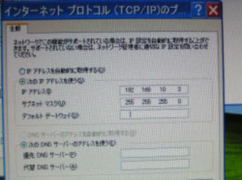 こちら側のIPアドレスは以下のように固定で「192.168.10.3」にしてあります。