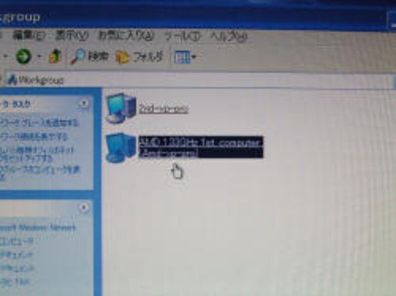 この状態で下のように、クロスケーブルで接続した相手側のコンピュータも表示されます。