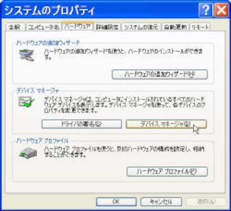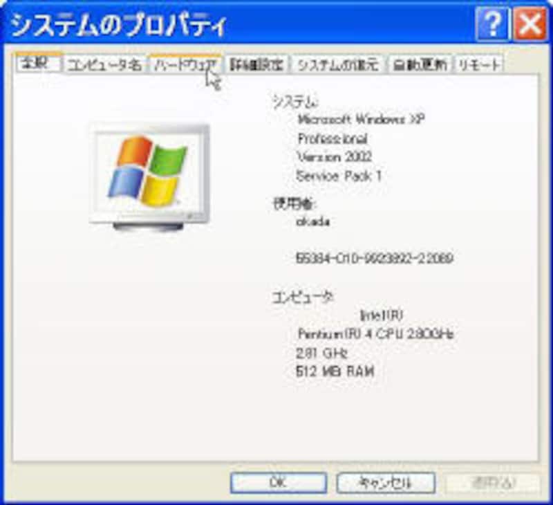 スタートボタン→マイコンピュータの右クリック→プロパティの選択