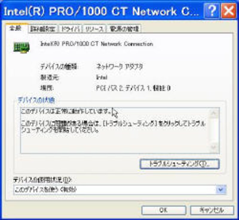 LANをセットアップするまえにがLANボードやLANカードが正常に作動しているかを確認してみましょう。方法は、ネットワークアダプタのプロパティを表示して「このデバイスは正常に作動しています」と表示されるかを確認します。