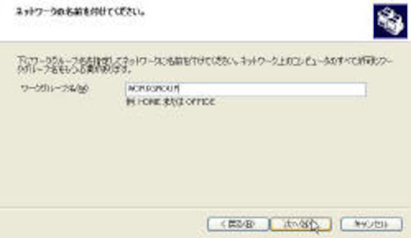 ↑98/Meなども一緒に利用するのであれば、初期値の「MSHOME」ではなく、98/Meの初期値である「WORKGROUP」にしておいた方がよいでしょう。
