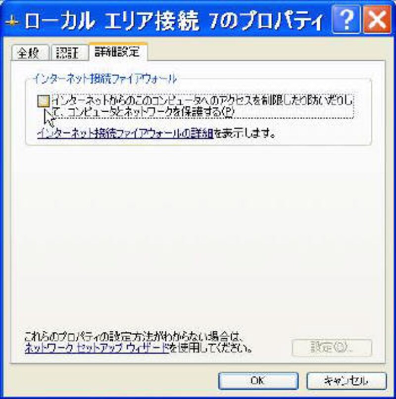(4)インターネット接続ファイヤーウォールのチェックを外す。