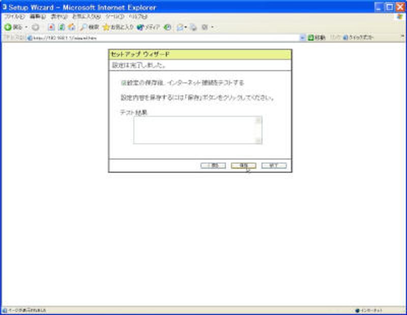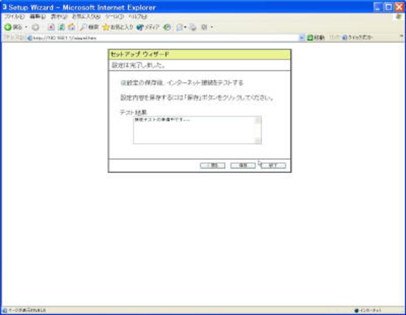 ▽設定を保存すると、自動的に接続テストを行います。もし、エラーが表示されたら、最初に戻ってやり直してください。