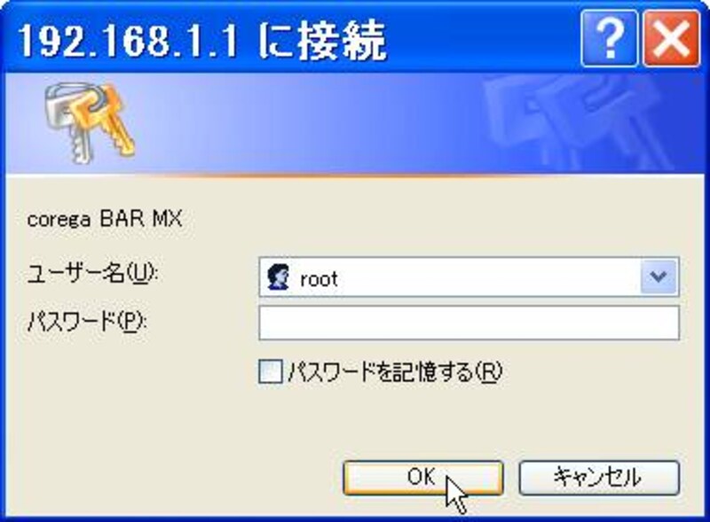 ▽ログイン画面がでますのでrootと入力します。パスワードは入力の必要はありません(初期値)。