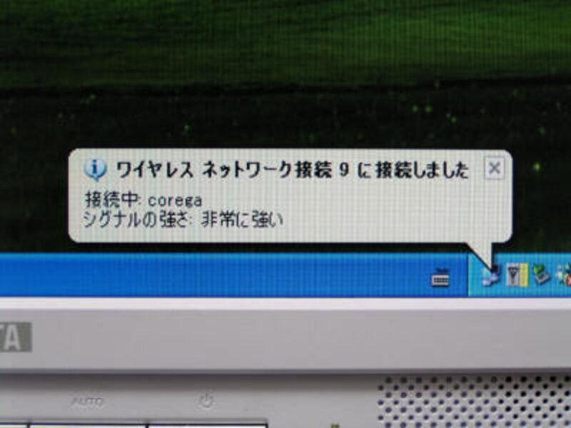 ↓再起動して無線LANカードをスロットに挿すと、新しいハードウェアが見つかった由が表示される。