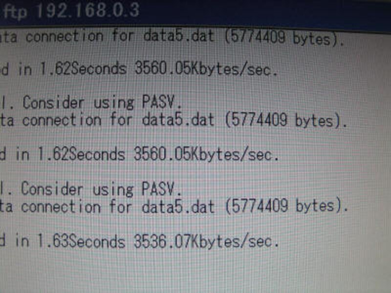 平均すると4255.33Kbytes/sec.ですから、34.0Mbpsとなります。転送に利用したファイルは、BMPファイルなどの圧縮率の高いファイルではなく、通常のデータファイルなので、相当高い値と言うことができます。SuperAG無効時と比べてみましょう。