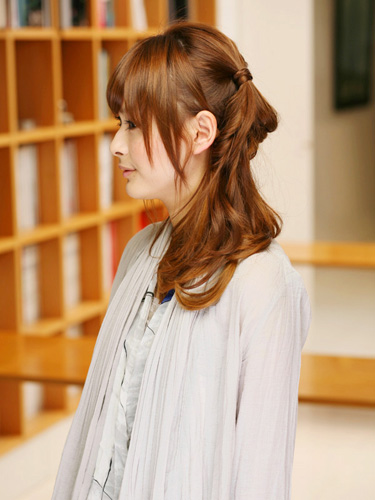 一見、難しそうに見えて実は簡単なこのアレンジ。オフィスにも適用できる範囲の華やかさを残したおしゃれな仕上がりです。ポイントは、前髪を流した方向と逆サイドで後ろの髪をまとめること。ヘアアクセを加えることでパーティシーンにも活用できます。また、前髪の分け目は、ワックスなどで少しはっきりさせるときちんと感が出ます。この分け目をつけることで前髪の縦長効果が生まれ、大人っぽい雰囲気に。
