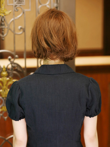 前髪の丸みとリンクさせ、全体に丸みを帯びたシルエットのボブ風アレンジに。流した前髪の曲線的な動きと顔周りの髪のニュアンスが強調されて女性らしさがアップ。丸みのあるシルエットが、きれいなお姉さん風の雰囲気を作ります。もっとキッチリとした印象にしたいという時は、耳に髪にかけ、耳を見せるスタイルにすると◎。