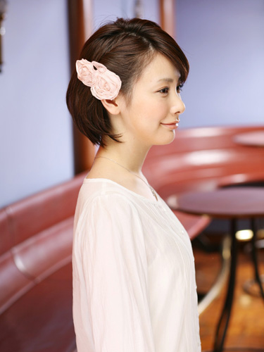 分け目を変えてもバランスがとりやすいショートヘアならではのアレンジ。7:3に分けて、前髪が少ない側のサイドの髪をタイトにまとめます。ストレートベースのアレンジの場合、分け目がくっきりしてしまうとさみしい雰囲気になってしまうのでトップと前髪を手ぐしでざっくりと分けるのがキレイに仕上げるコツ。ヘアアクセサリーの種類によって、仕事からパーティまで楽しめる優秀アレンジです。