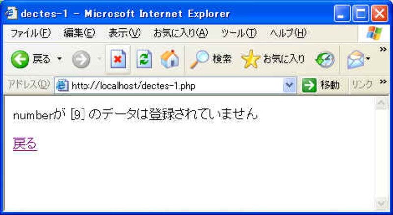 | (画像をクリックすると拡大表示できます) 登録されていないnumberのデータを指定した場合はエラーメッセージが表示されます。 |