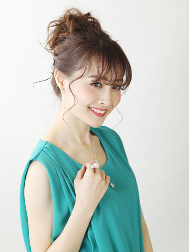 まるで飴細工のような繊細な後れ毛と、シースルーの前髪が印象的なアップスタイル。ゴールデンポイントにボリュームを持たせた大きめのお団子ヘアなので、いつも以上にスタイルよくドレスを着こなせるはず。細めのコテを使えば華やかで個性的に、太めのコテを使えばナチュラルで優しい雰囲気にアレンジ可能です。