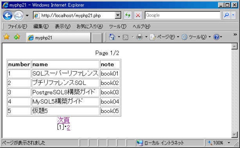 | (画像をクリックすると拡大表示できます) $maxline = 5; で指定した場合。5件づつ表示しています。 |