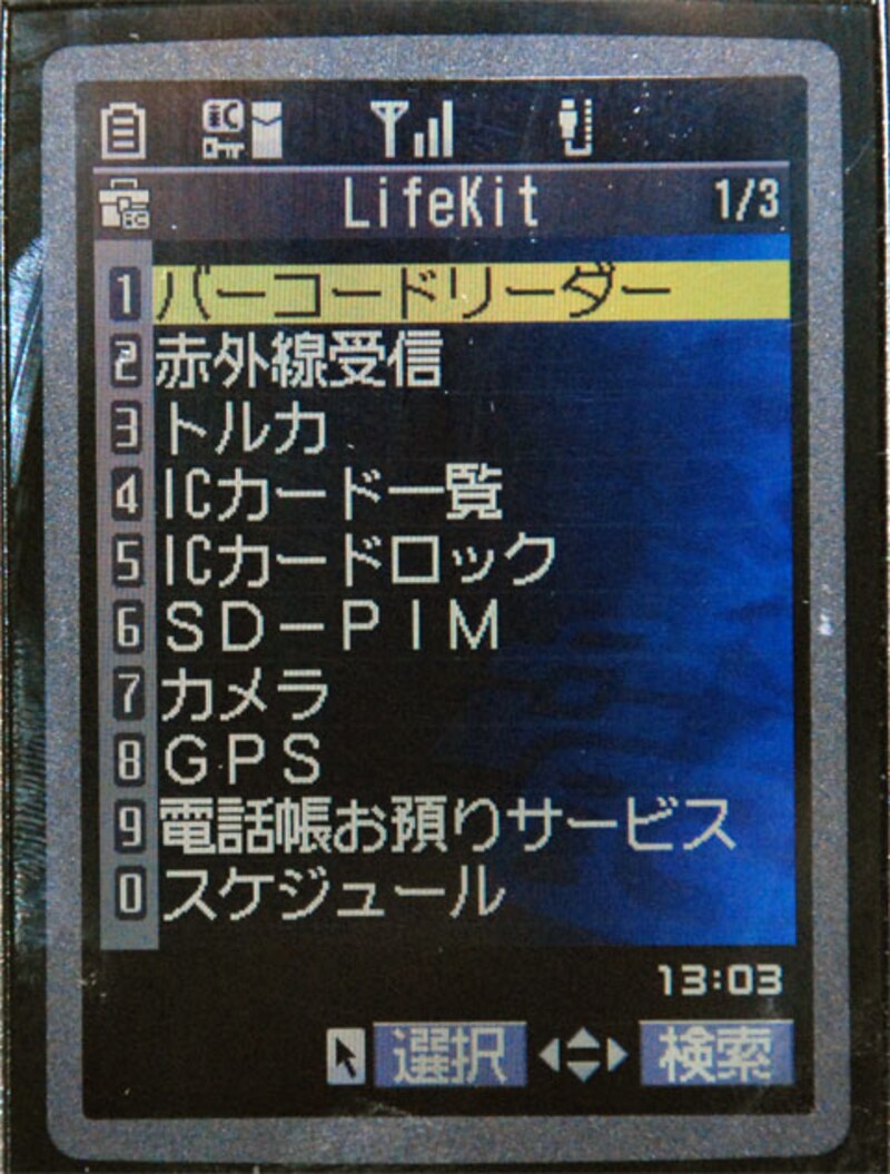 | (画像をクリックすると拡大表示できます) 携帯のバーコード(QRコード)リーダーはDoCoMo n903iの場合だと、「メニュー」-->「LifeKit」--->「バーコードリーダー」で起動します。 |