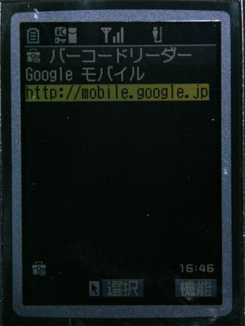 | (画像をクリックすると拡大表示できます) QRコードの読み込みに成功し、Google モバイルサイトのアドレスが表示されました。 |