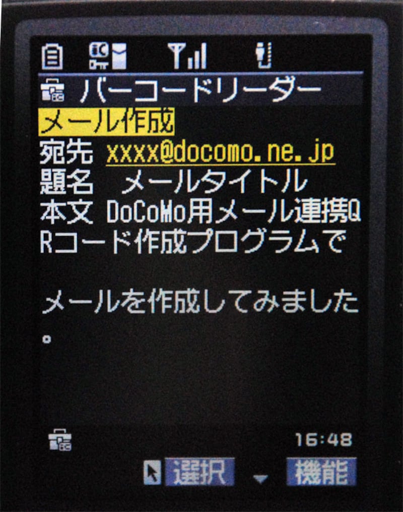 2.1 DoCoMo用メール連携QRコード作成プログラムの動作を確認する