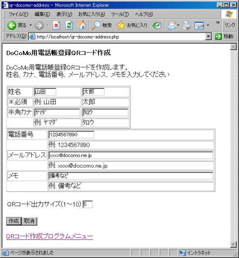 2.1 DoCoMo用電話帳登録QRコード作成プログラムの動作を確認する