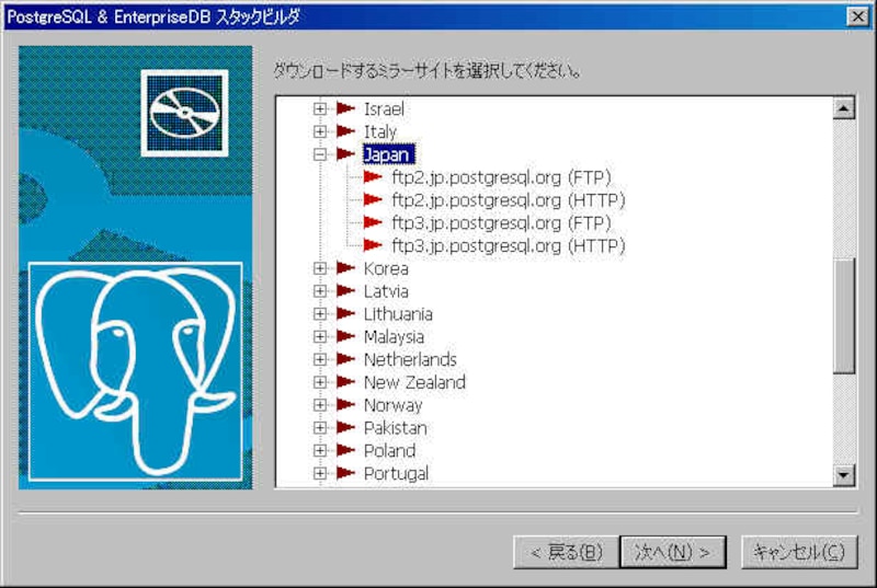 | (画像をクリックすると拡大表示できます) ダウンロードするミラーサイトを指定します。  |