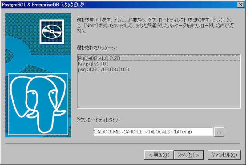 | (画像をクリックすると拡大表示できます) ダウンロードするアプリケーションの確認と格納先のディレクトリを指定し「次へ」を押すとダウンロードを開始します。  |