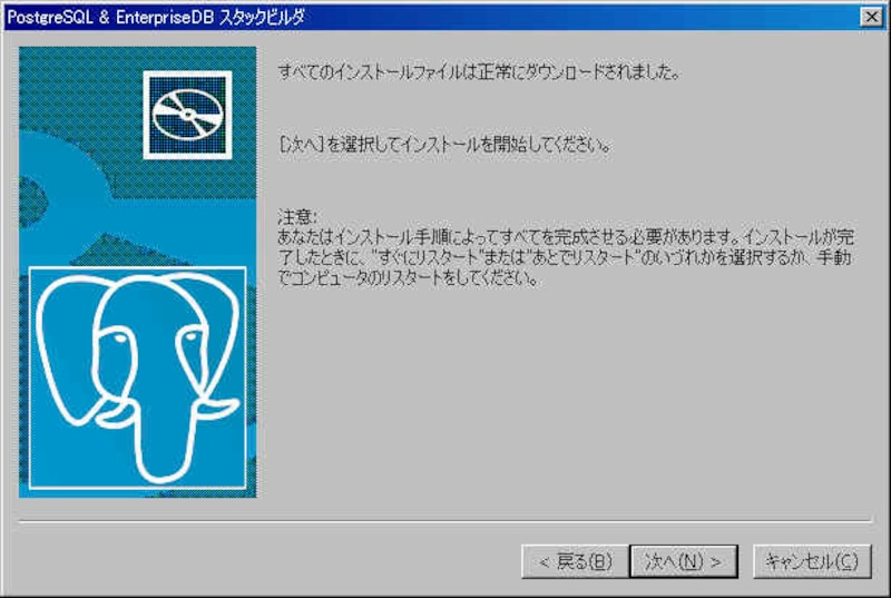 | (画像をクリックすると拡大表示できます) 正常にダウンロードが完了した後に「次へ」を押すとインストールを開始します。  |