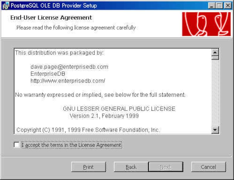 3.5.1 PostgreSQL OLE DB Providerのインストールの開始