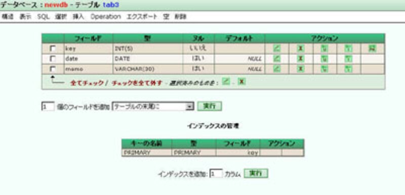 以下の画面は、移行先のデータベース「newdb」の構成です。