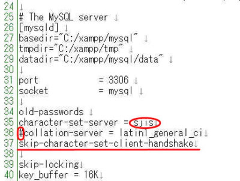 ここではMySQLの文字コードにsjis(SHIFT-JIS)を指定する場合の例を解説します。日本語EUC(ujis)を設定する場合は読み替えてください。