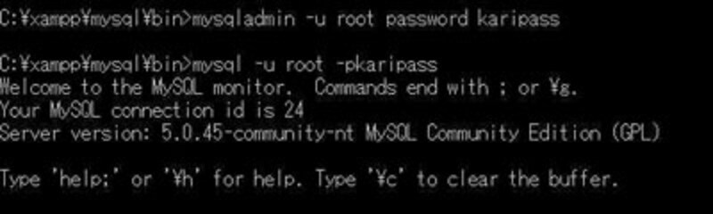 のように指定します。下図はrootのパスワードを「karipass」に設定した後、ログインしてパスワードの変更を確認している例です。