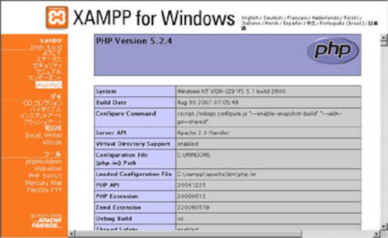 1. XAMPPのコントロールパネルよりApacheの管理ツールを起動します。