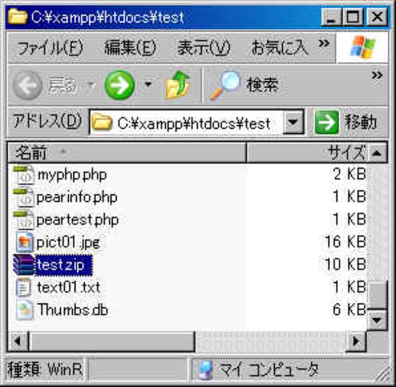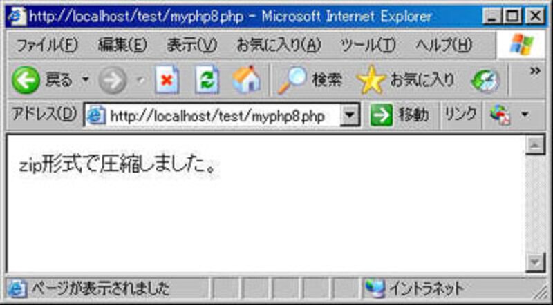 3. Zip形式のファイル圧縮プログラム(myphp8.php)のテスト