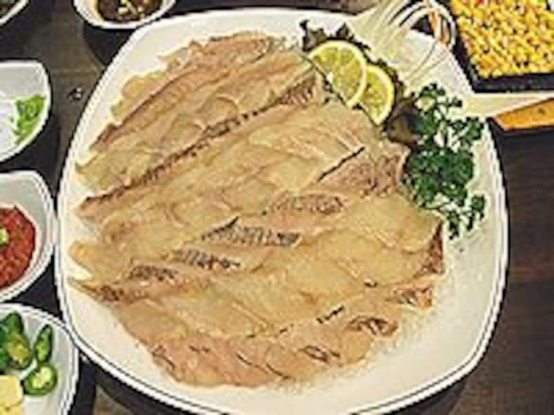 | 魚市場で食べる刺身はとても新鮮です。 |