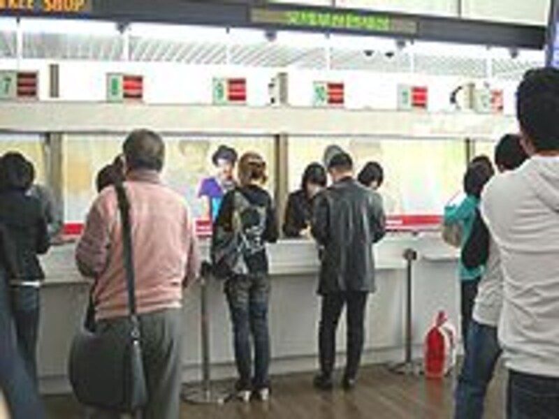 | 購入した免税品は空港の窓口で受け取ります。市内の免税店をご利用になる方は、商品購入時にもらう交換チケットを失くさないように |