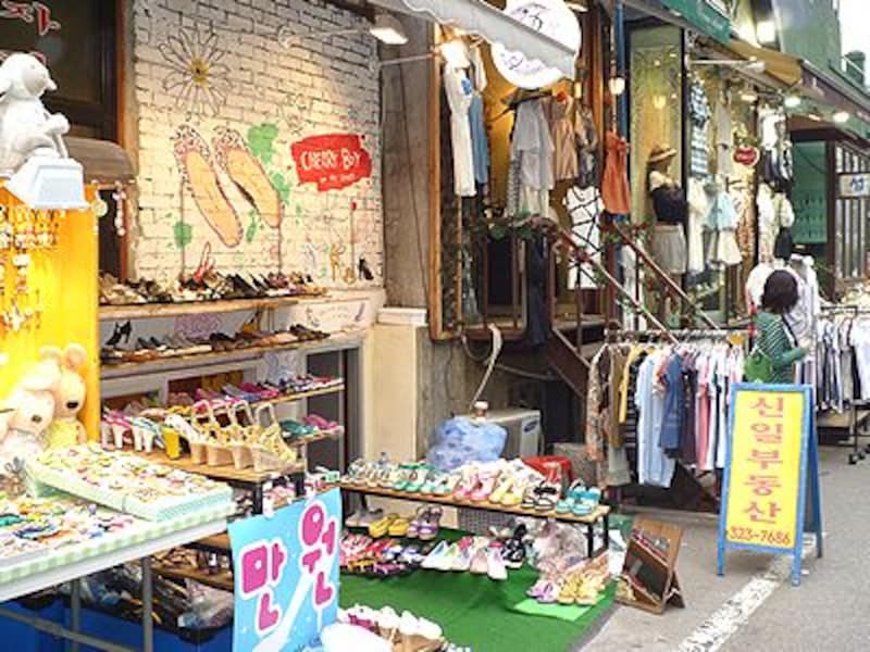 総合芸術大学の弘益大学(弘大/ホンデ)があることから、芸術に敏感な学生や若手クリエイターたちが集まる街で、個性的なインテリアのカフェや洋服屋、ビンテージショップなどが集中しています。また、毎週日曜日には、弘大前の公園でフリーマーケットが開かれます。ハンドメイドアクセサリーや雑貨、洋服や靴など、素敵なデザインのアイテムがたくさん見つかりますよ。また、クラブやライブハウスがたくさん集まっていることでも有名。昼だけでなく夜も熱いエリアです。