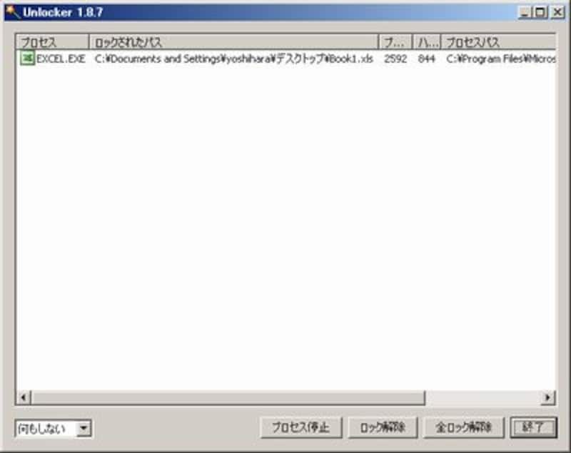 そのなかからアクセスを遮断したいものを反転表示させてウィンドウ右下の「Unlock」を選択し、ファイルへのアクセスを断ち切っていけば、ファイルを削除できるようになるわけです。