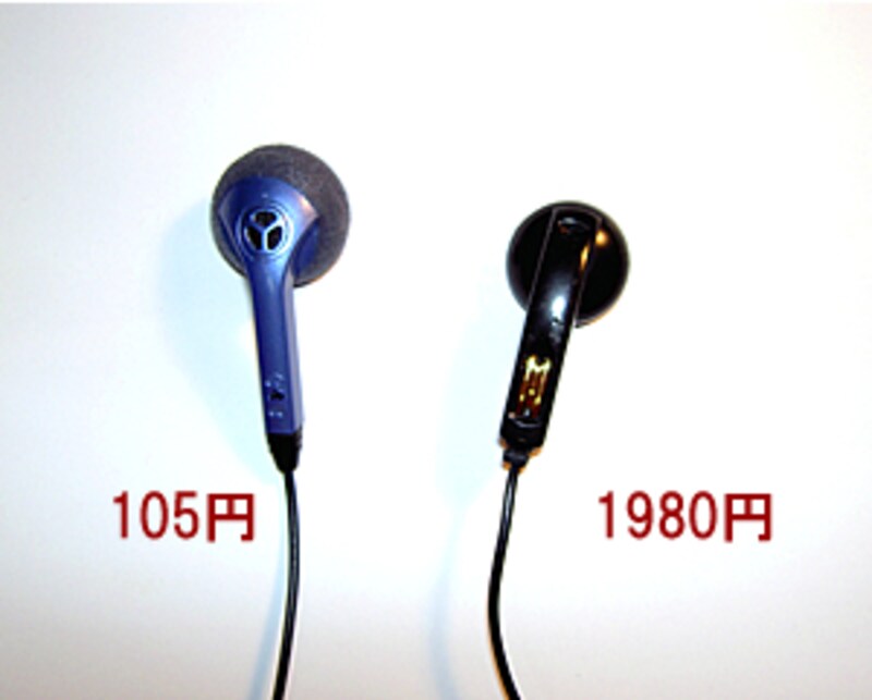 イヤホン部分ですが、105円の方が見た目に数ミリ大きいようです。