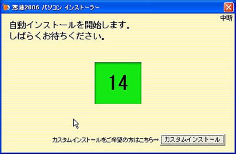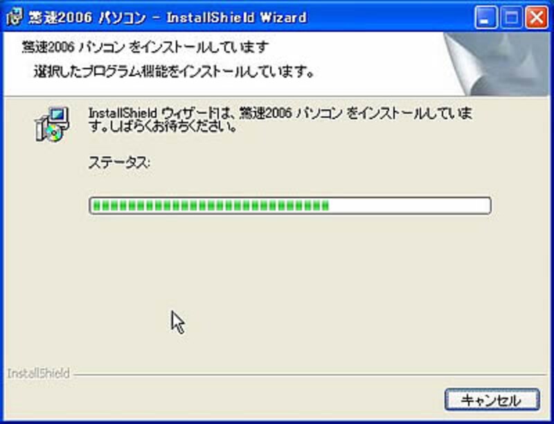 『「驚速2006パソコン」のインストール』をクリックすると画面が変わり、しばらくすると自動的にインストールが始まります。
