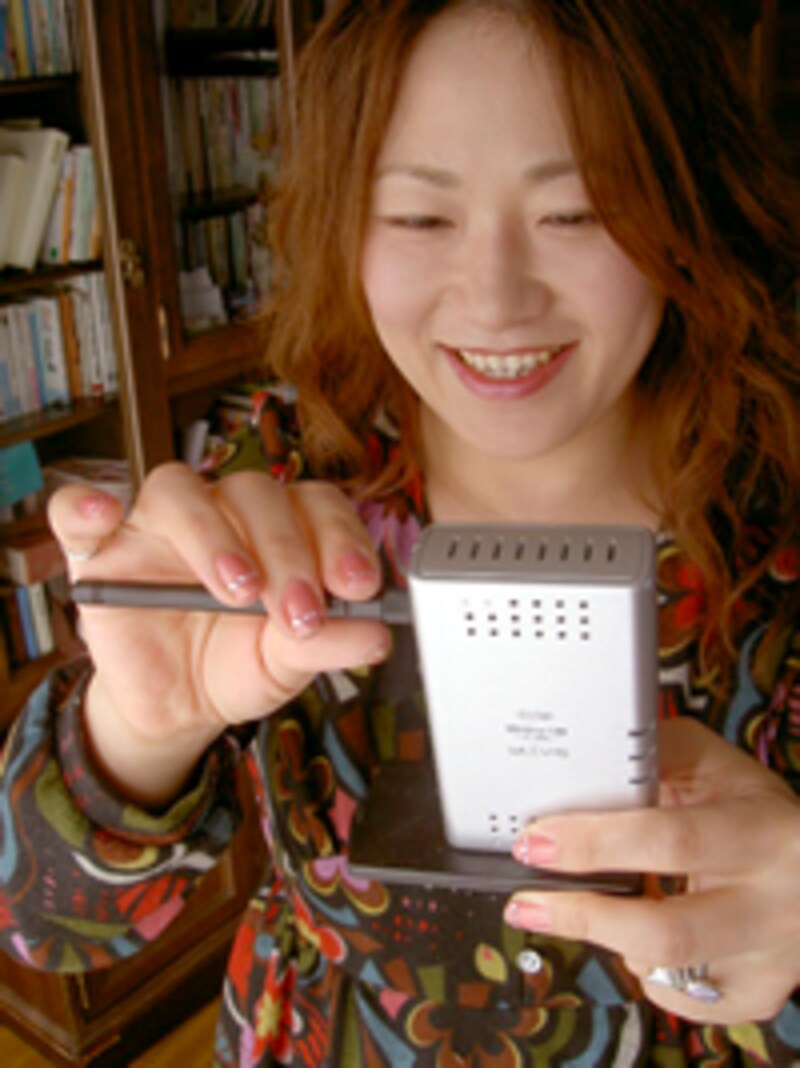 まず製品を箱からとりだします。本体とアンテナが別々になっていますので、まずは本体にアンテナを取り付けます。取り付けといっても、アンテナの根元がネジになっているので、それを本体にねじ込むだけです。![]() |