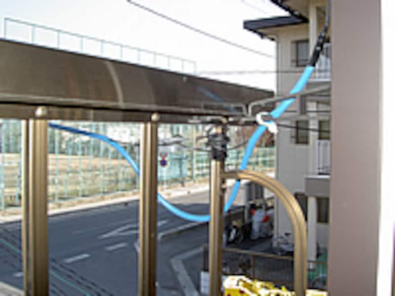 | ベランダまで光ファイバーを持ってきたところ。 |