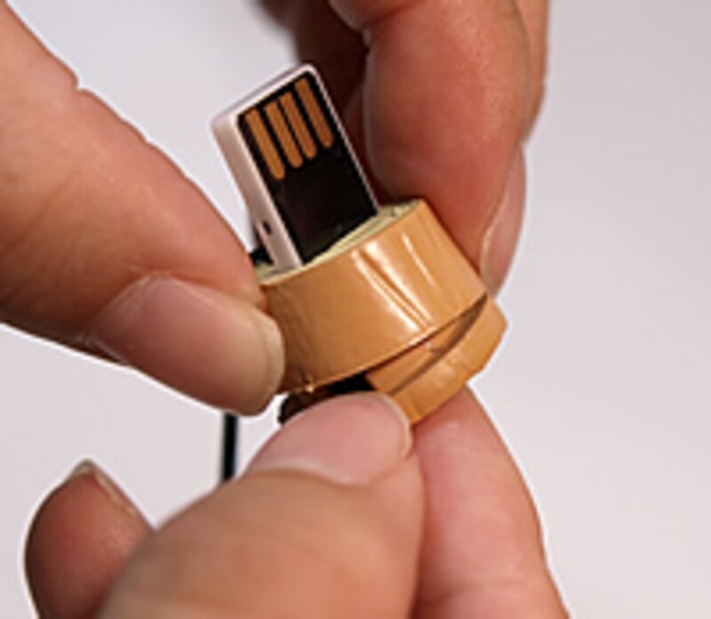 ある家電量販店のケータイグッズコーナーに、普通のドコモダケ・ストラップのようなものが置いてありました。販売価格は1200円で、ドコモダケとはいえ、ストラップにしては値段が高すぎる感じでした。実際、売れている様子も伺えません。不思議に思い、よく見てみると「ドコモダケmicroSDリーダーライター ストラップ」と書いてあります。「???」さらに不思議に思い、裏面を見てみると、なんとスパイグッズにもなりそうなドコモダケストラップだったのです!