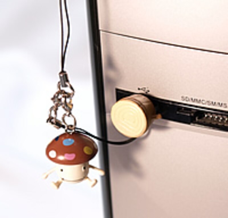 すでにおわかりの方もいると思いますが、このストラップ、実はmicroSDカードをUSBで読み書きするためのアダプタだったのです。本体と切り株を離して、切り株側をパソコンのUSBポートにさすと、きちんとパソコンで認識します。